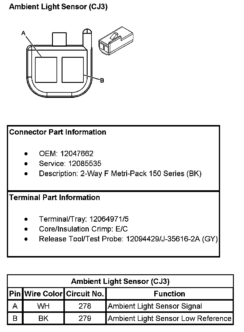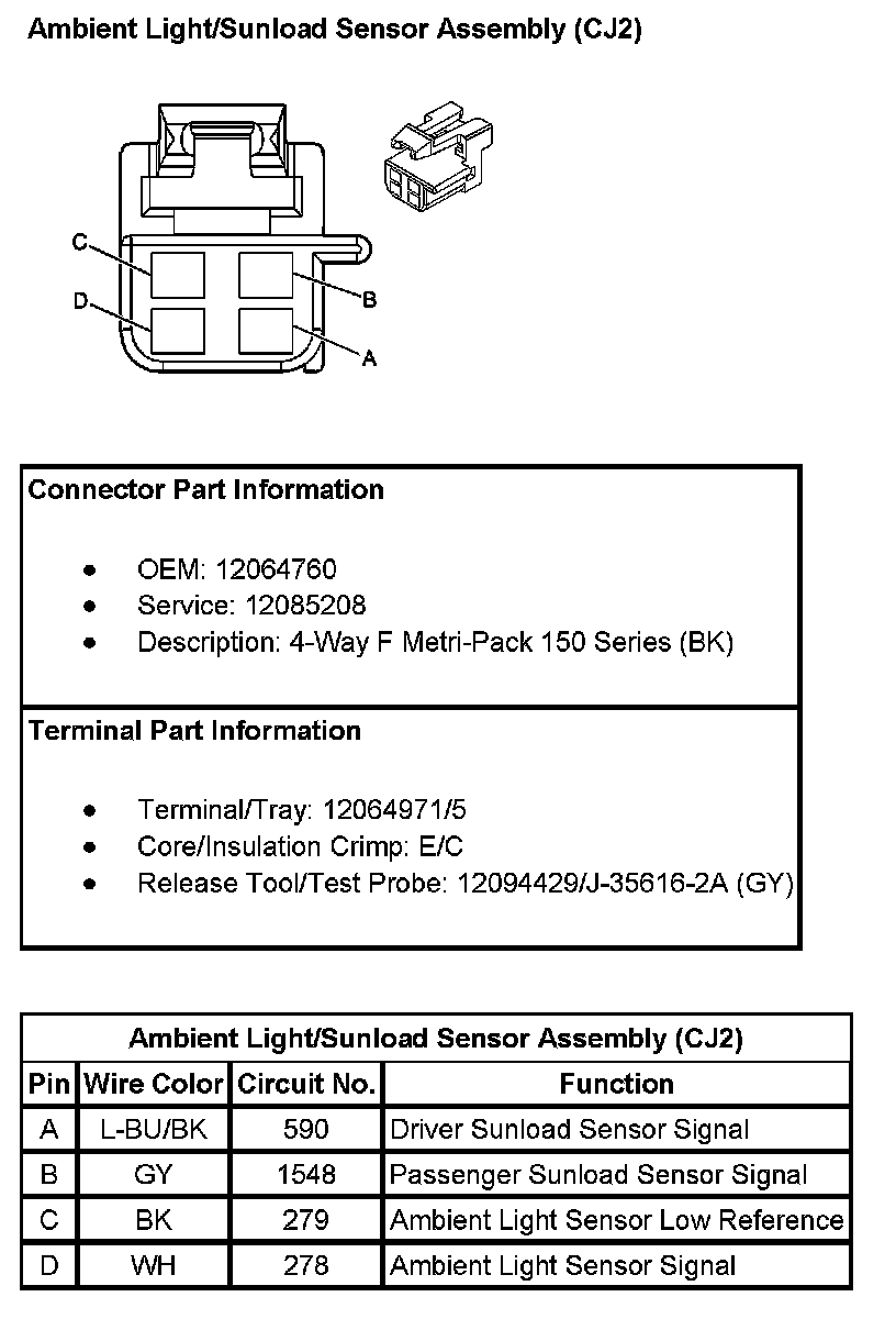 Ambient Light / Sunload Sensor Assembly (With RPO Code CJ2):