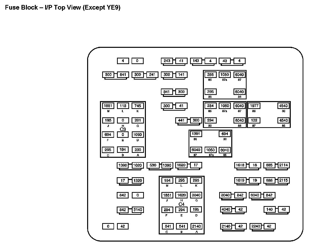 Fuse Block - I/P Top View (With RPO Code YE9):
