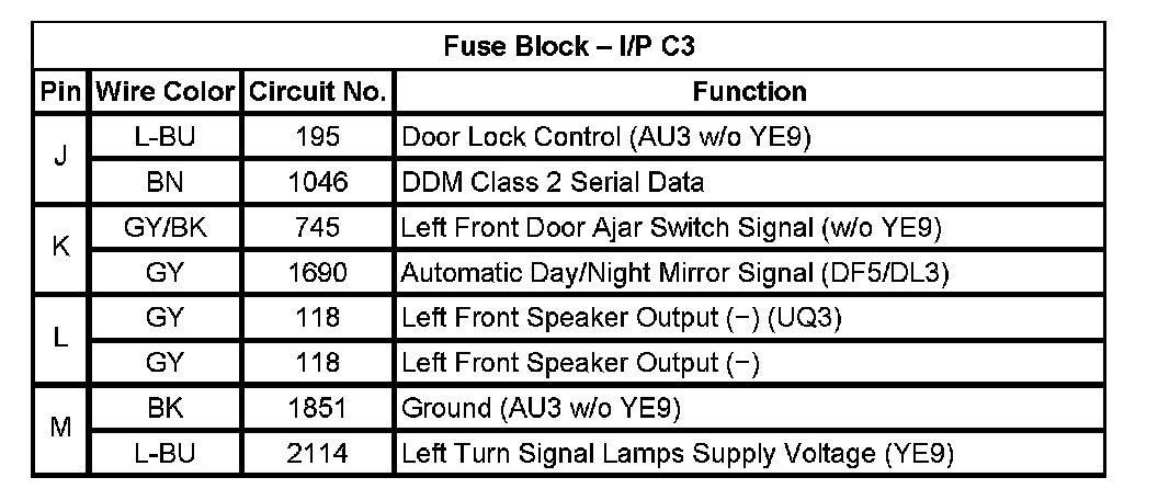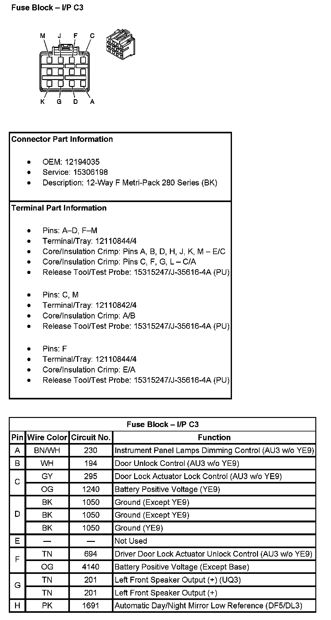 Fuse Block - I/P C3 (Pin J To M):