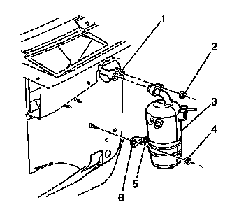 9. Remove the accumulator bracket nut (4) from the retaining stud.