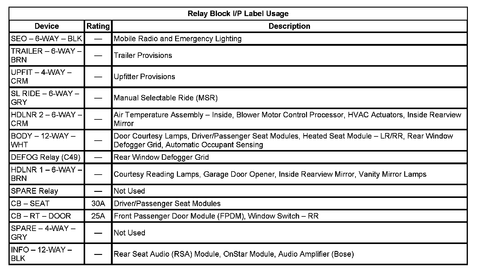 Relay Block - I/P Label Usage: