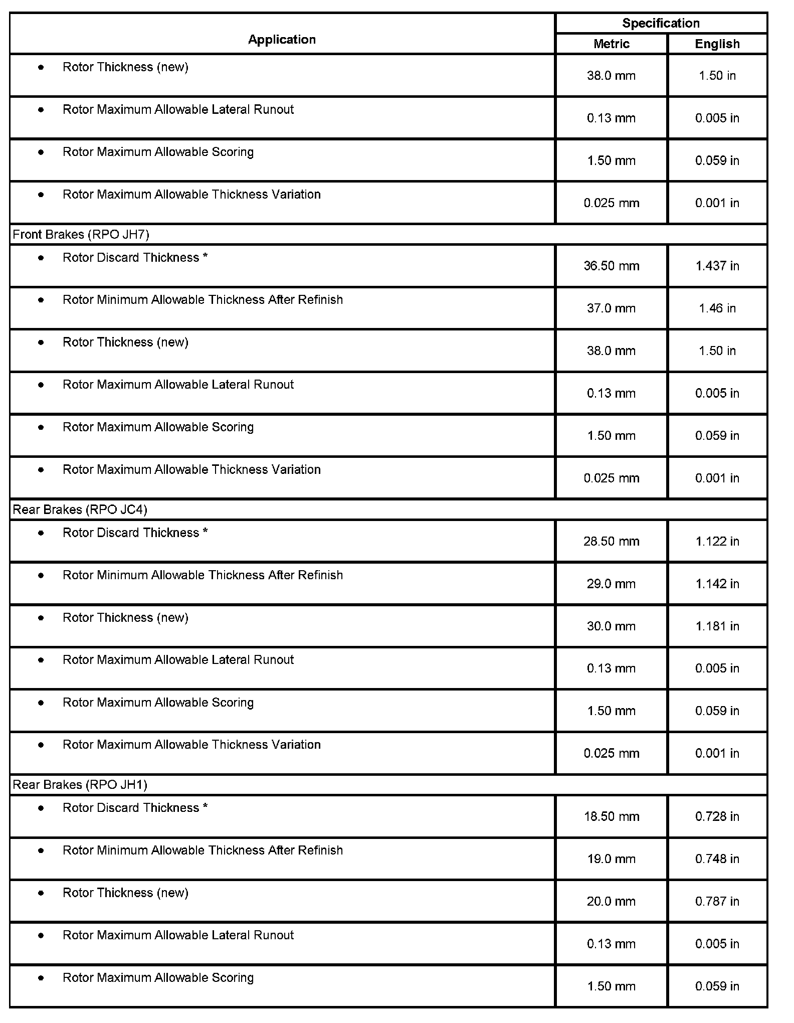 Disc Brake Component Specifications (Part 2):