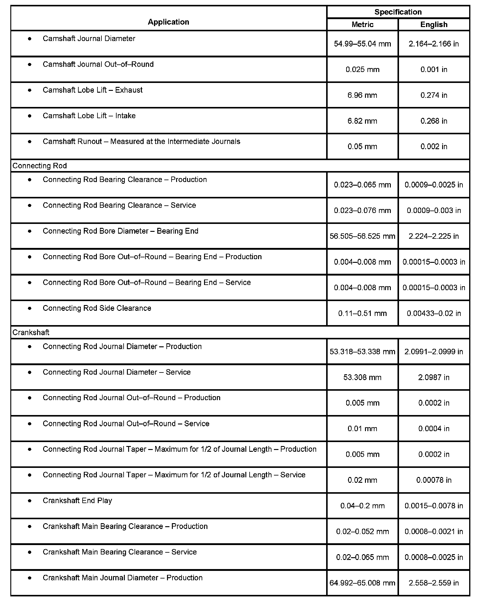 Engine Mechanical Specifications (LR4 VIN V) (Part 2):