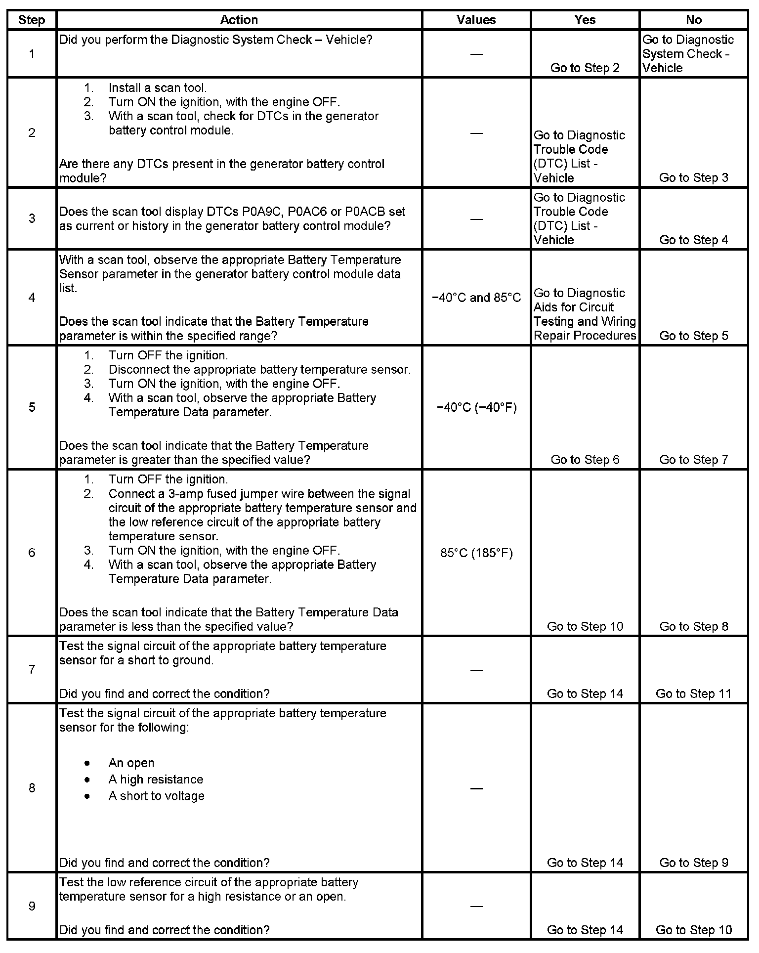 * P0A9E is set when the generator battery control module has determined that the battery 1 temperature sensor value is greater than 85�C.