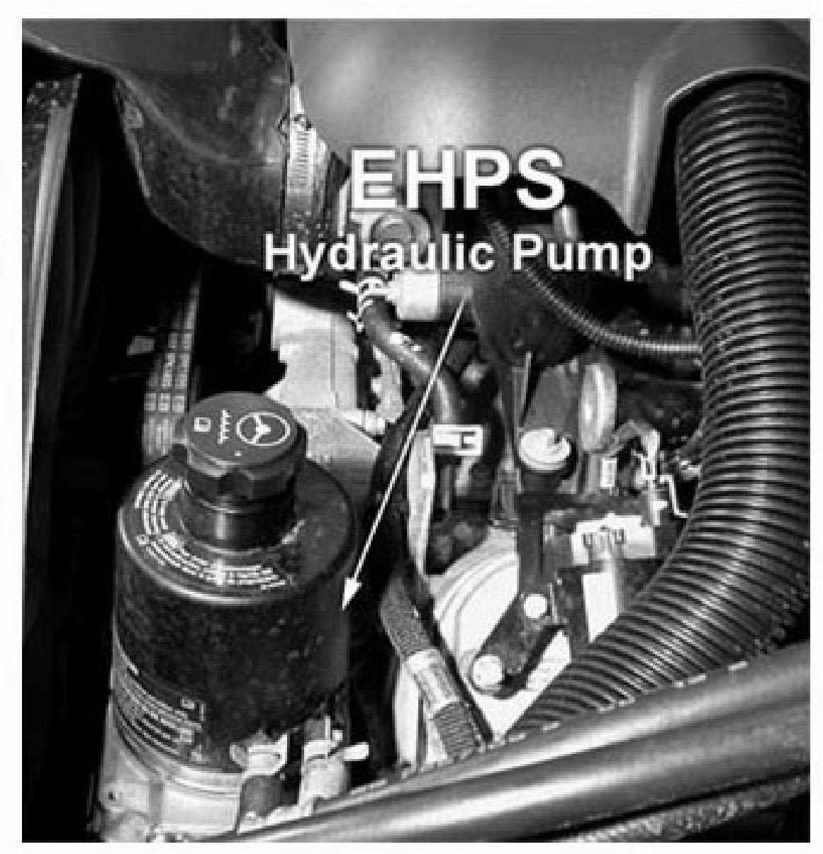 The standard power steering pump has been replaced by a 42-volt electro-hydraulic power steering pump that generates hydraulic pressure for steering and brake assist.