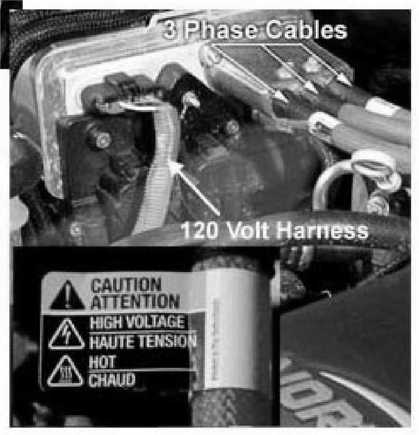 - Three phase cables from the starter/generator carry up to 50-volts A/C.