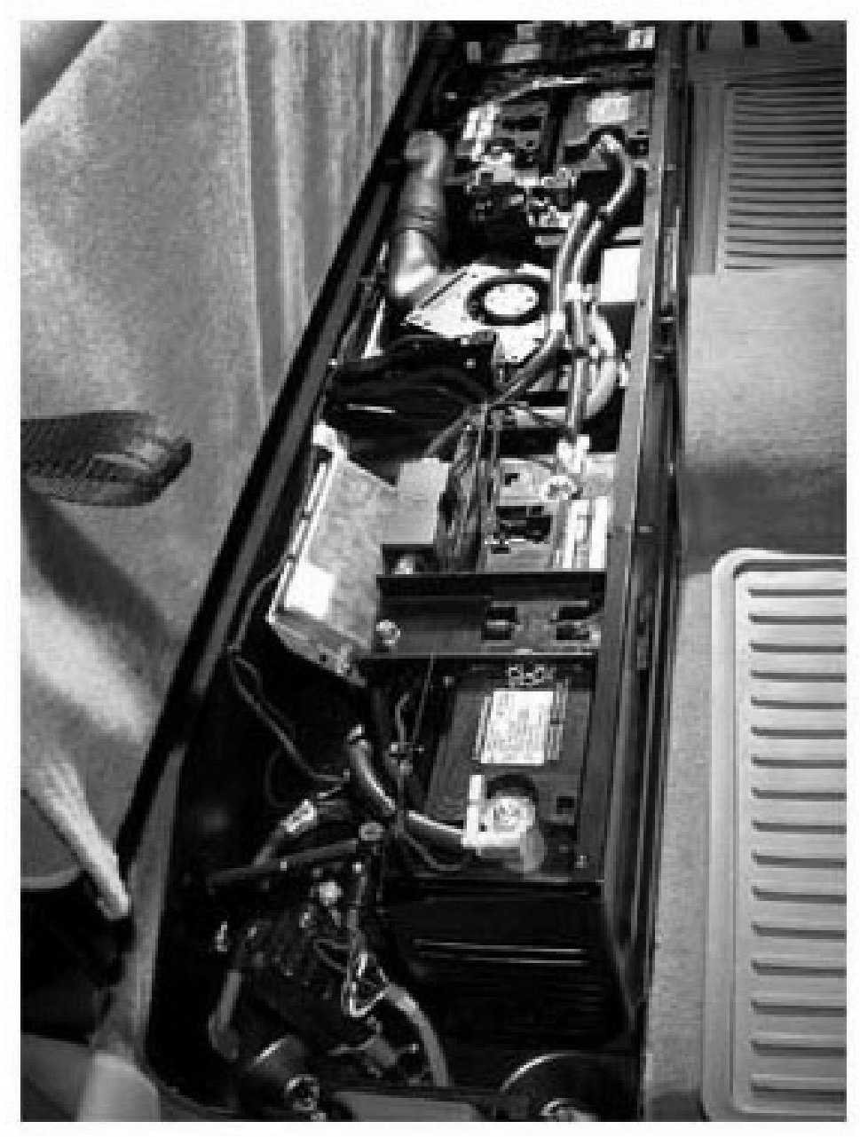 - The 42-volt batteries are enclosed in a metal box whose lid is secured with Trox bit bolts.