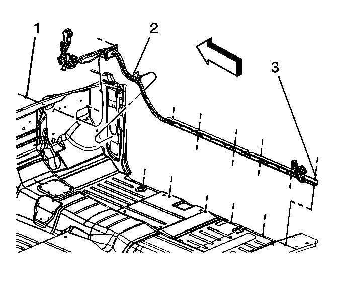 13. Disengage the 42-volt positive/negative cable channel from the studs on the floor.