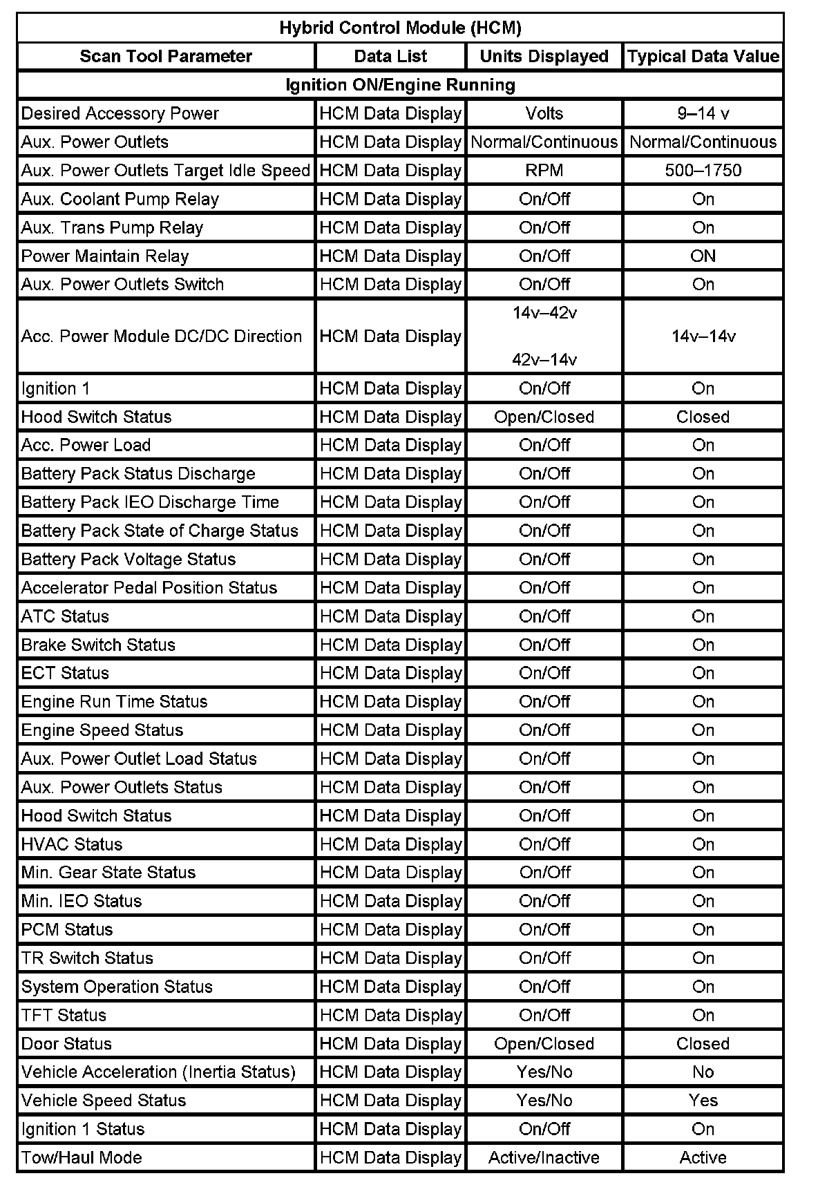 Scan Tool Data List (W/HP2)