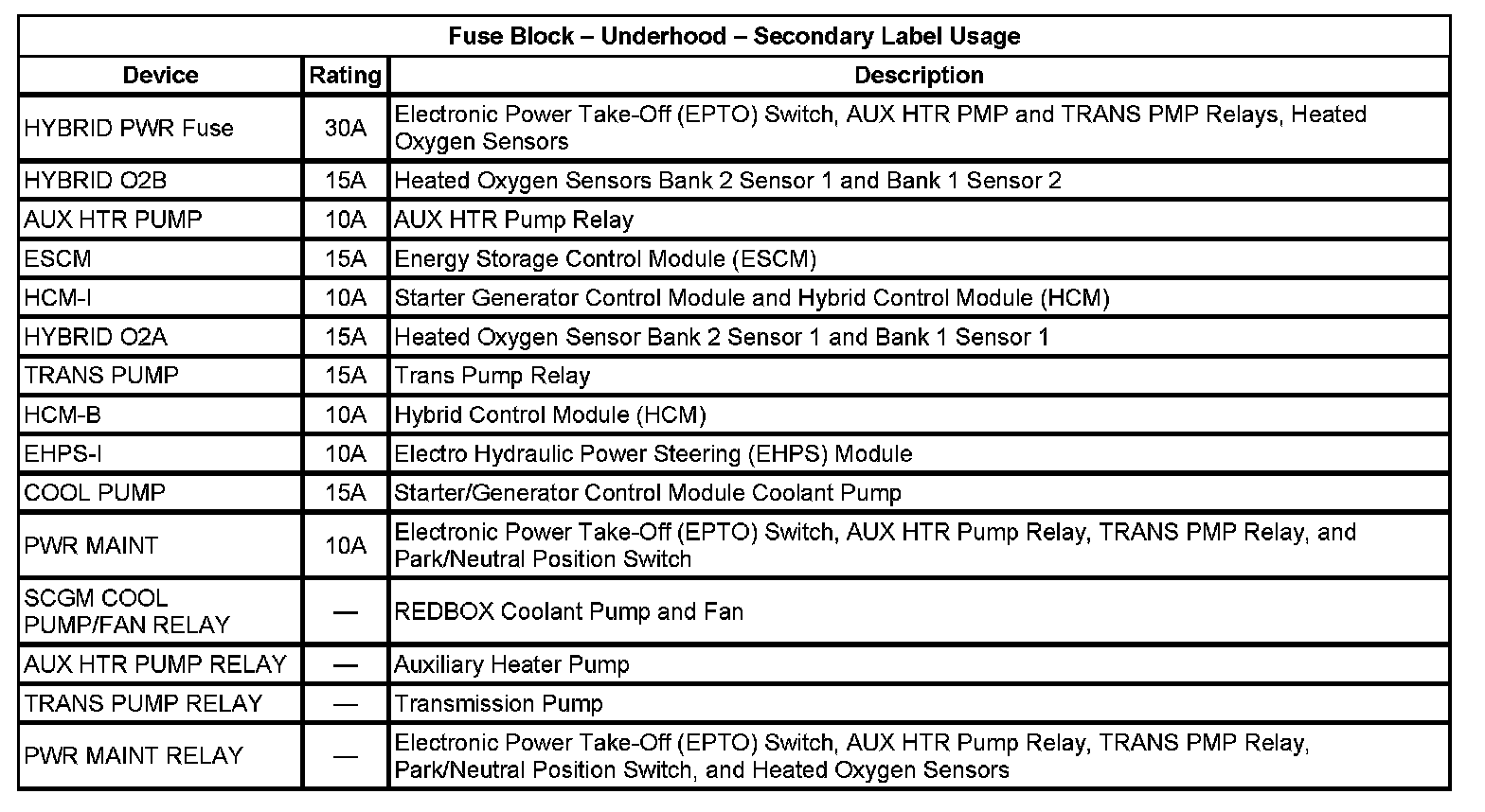 Fuse Block - Underhood - Secondary Label Usage: