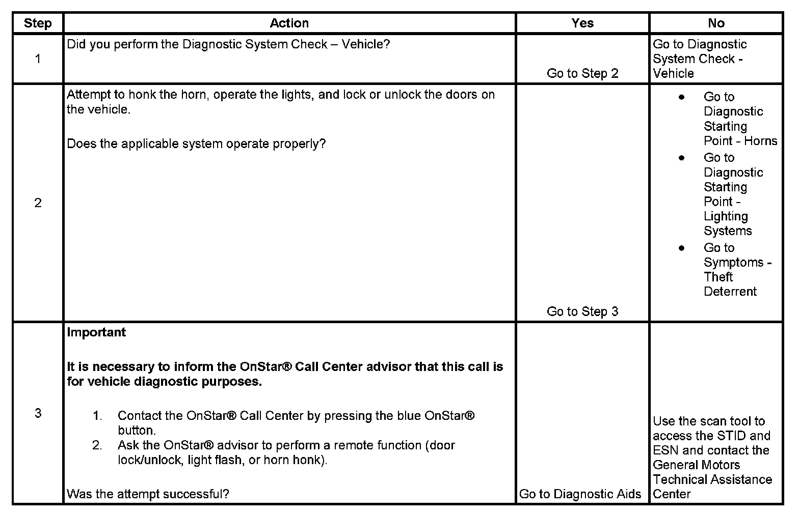 OnStar Call Center Remote Function Requests Inoperative