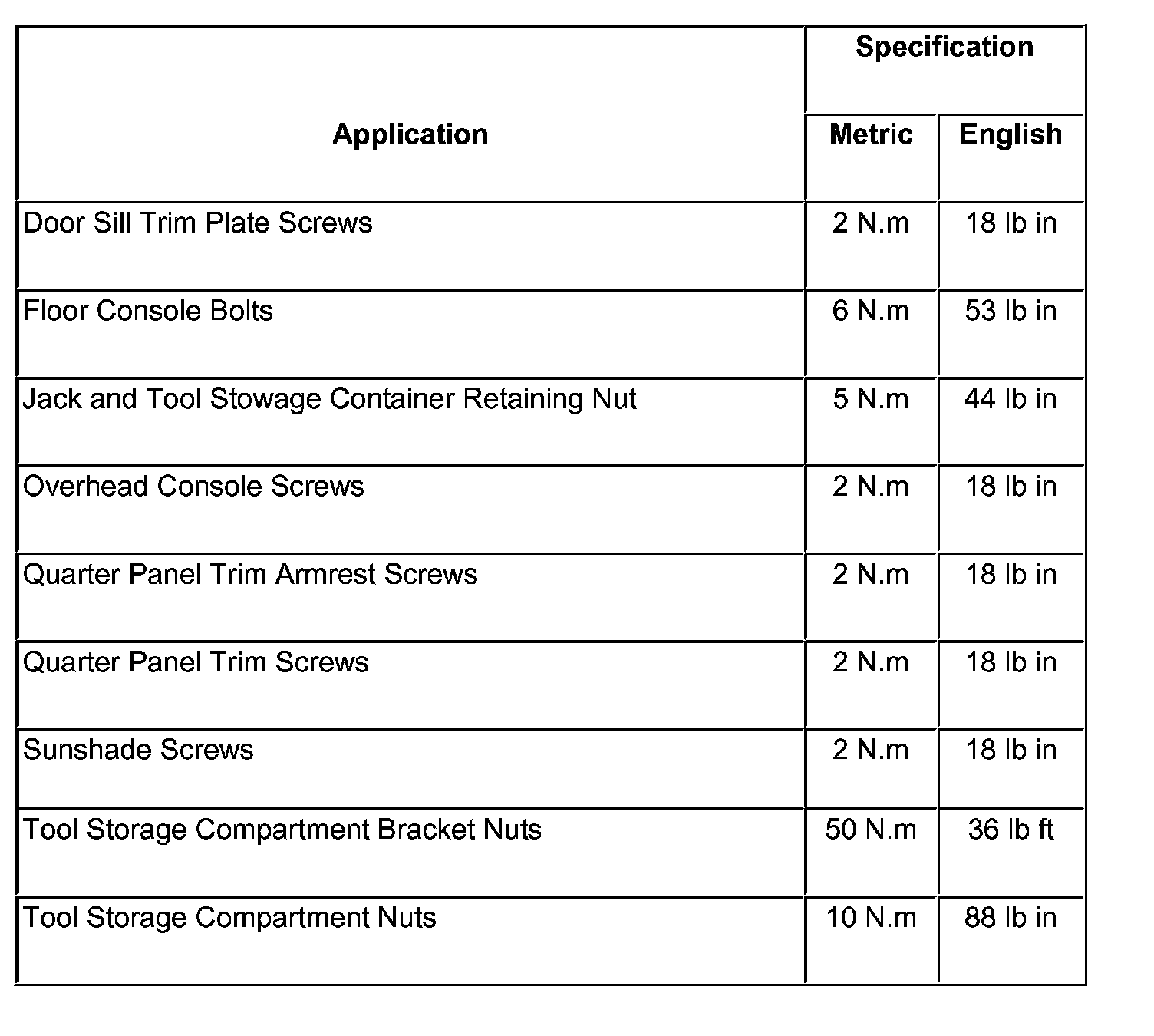 Interior Trim and Paneling - Fastener Tightening Specifications