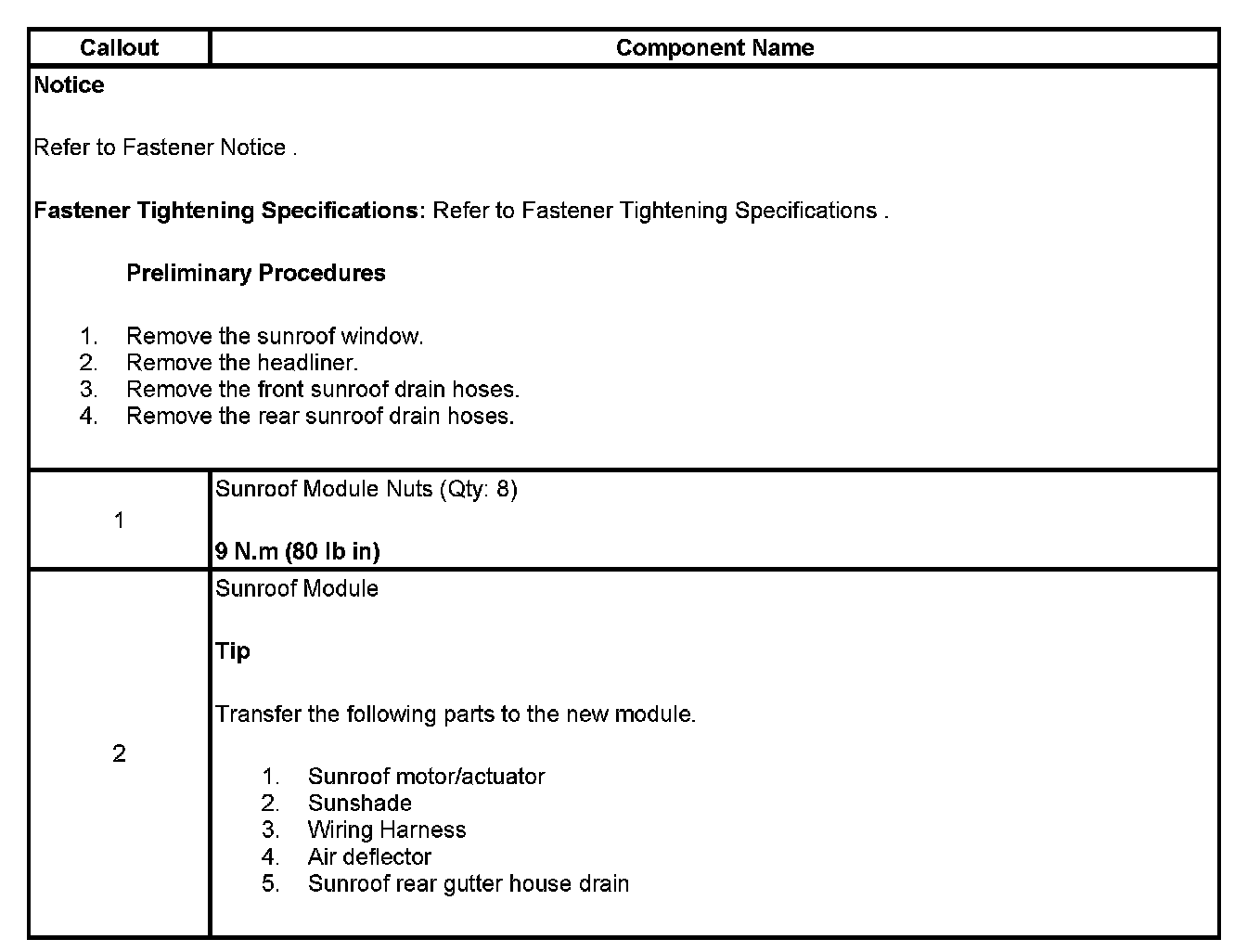 SUNROOF MODULE ASSEMBLY REPLACEMENT