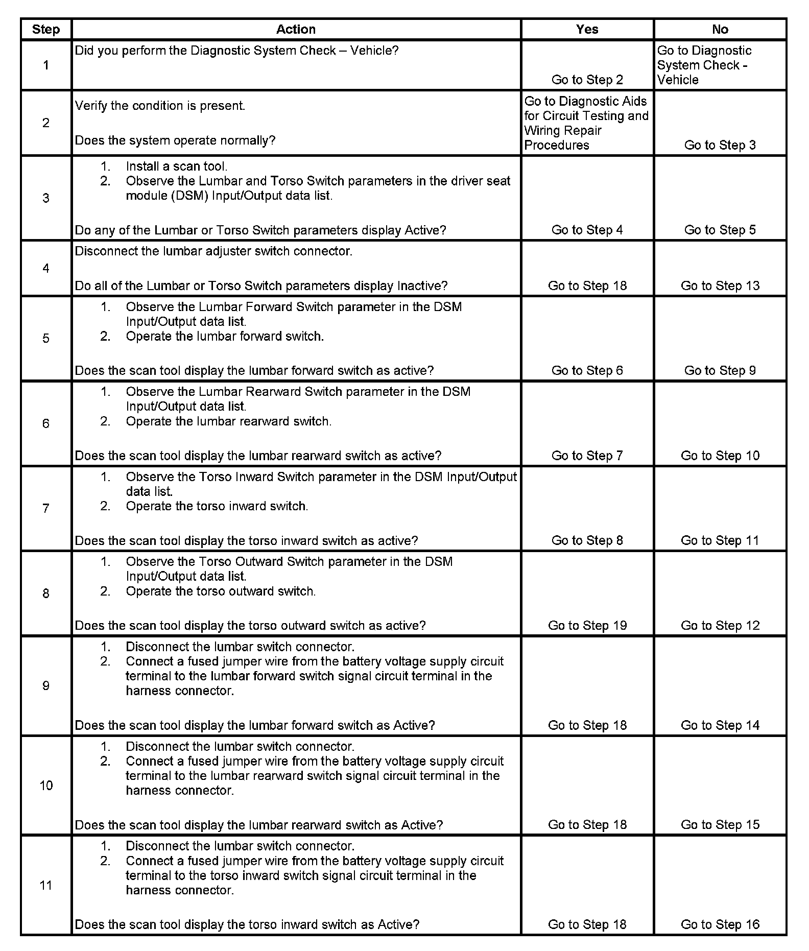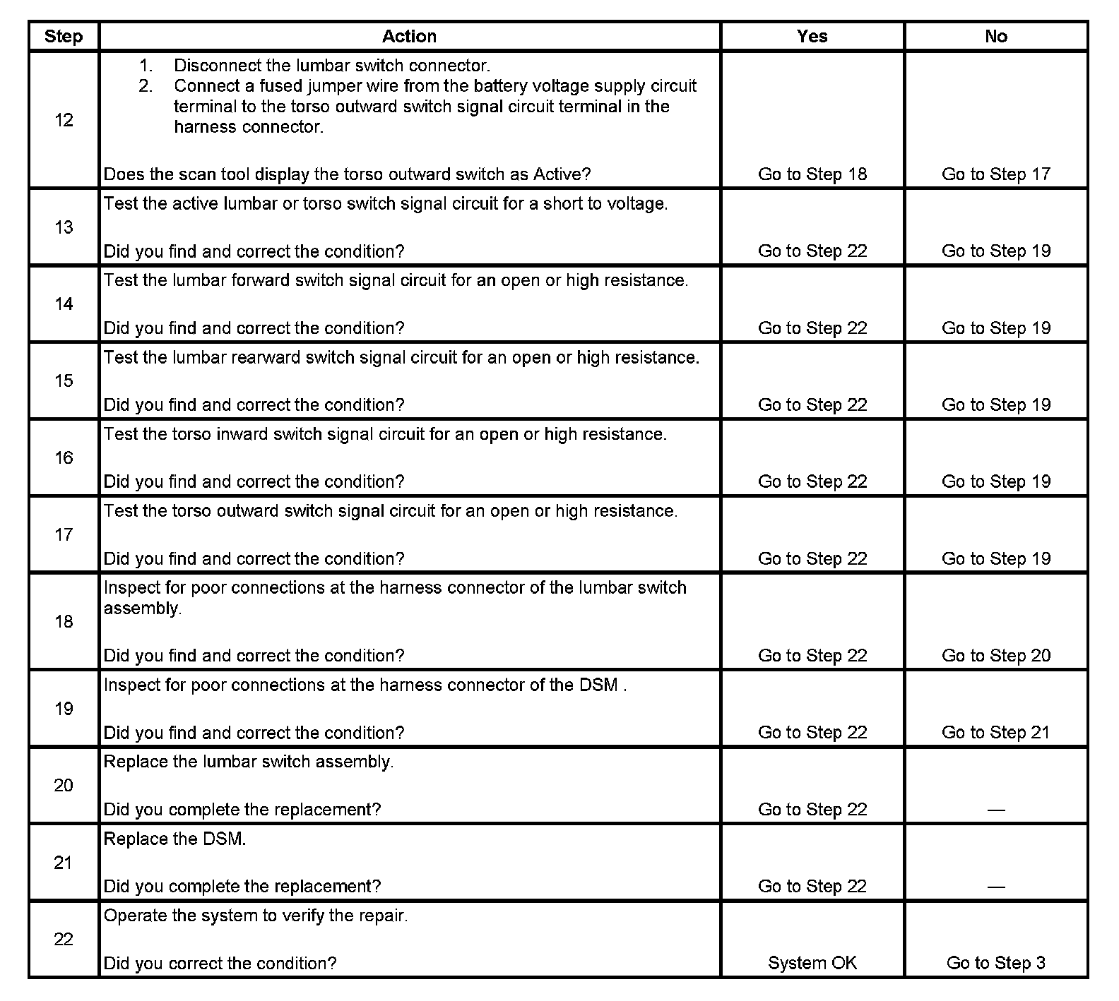 Lumbar Support Inoperative (With Memory)