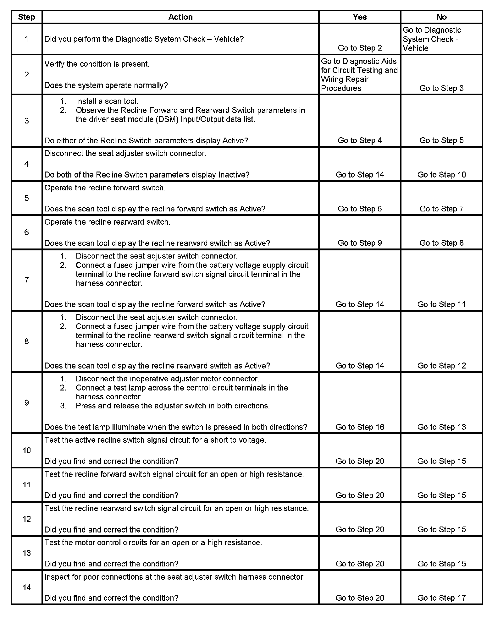 Power Seat Does Not Recline (With Memory)