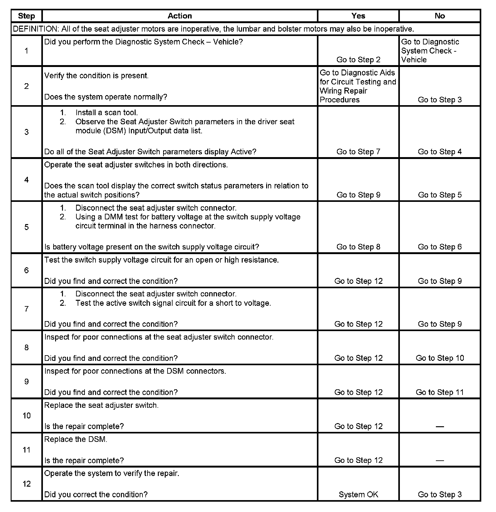 Power Seat Inoperative (With Memory)