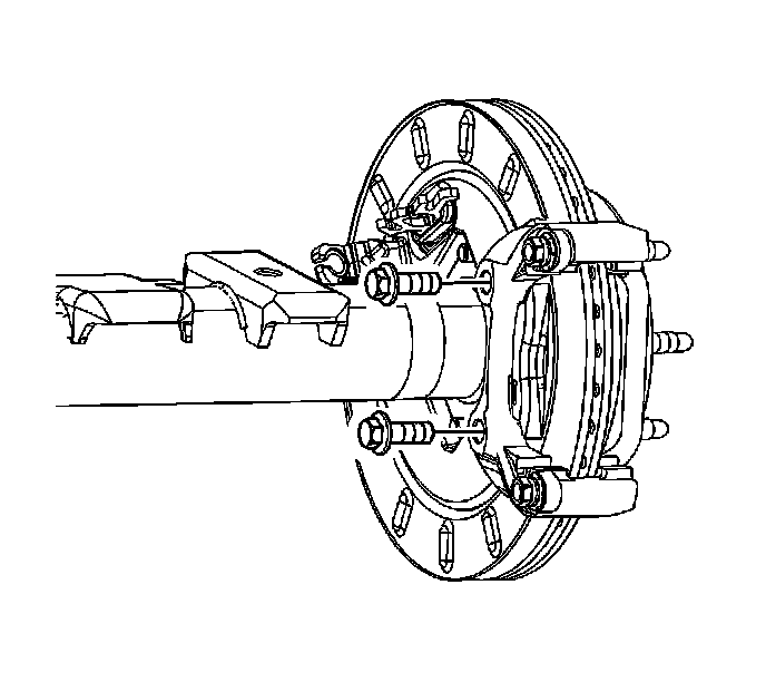 10. Remove the brake caliper bracket bolts.