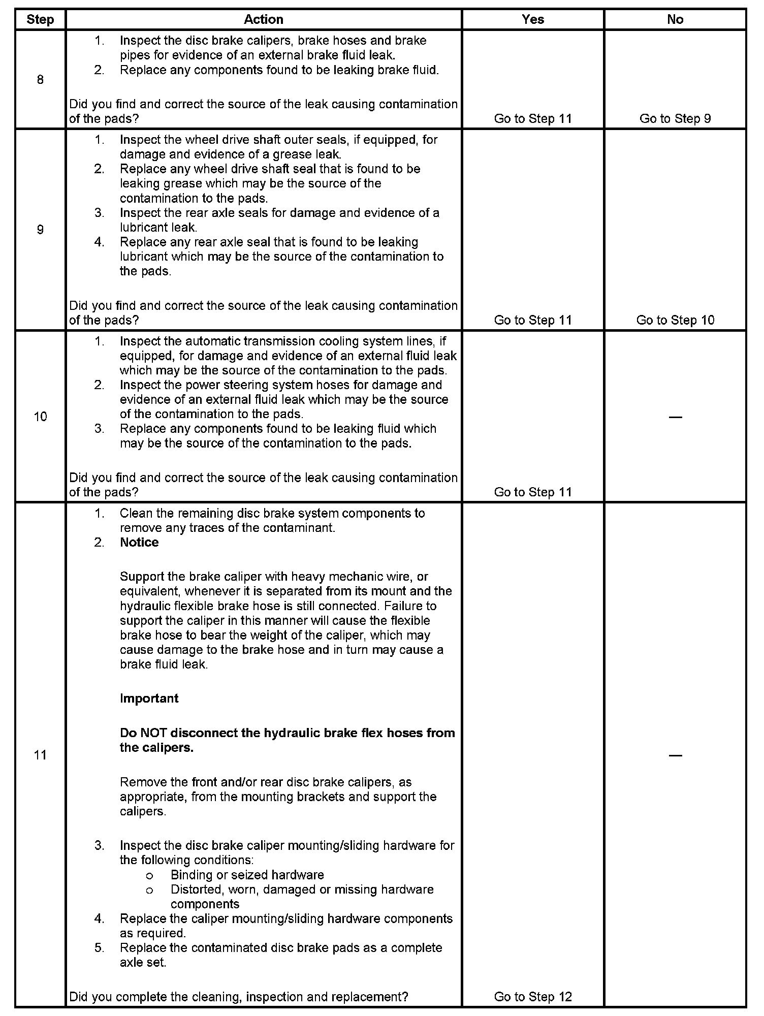 10. Lubricant leaks from non-brake system components may come in contact with and contaminate brake system components.