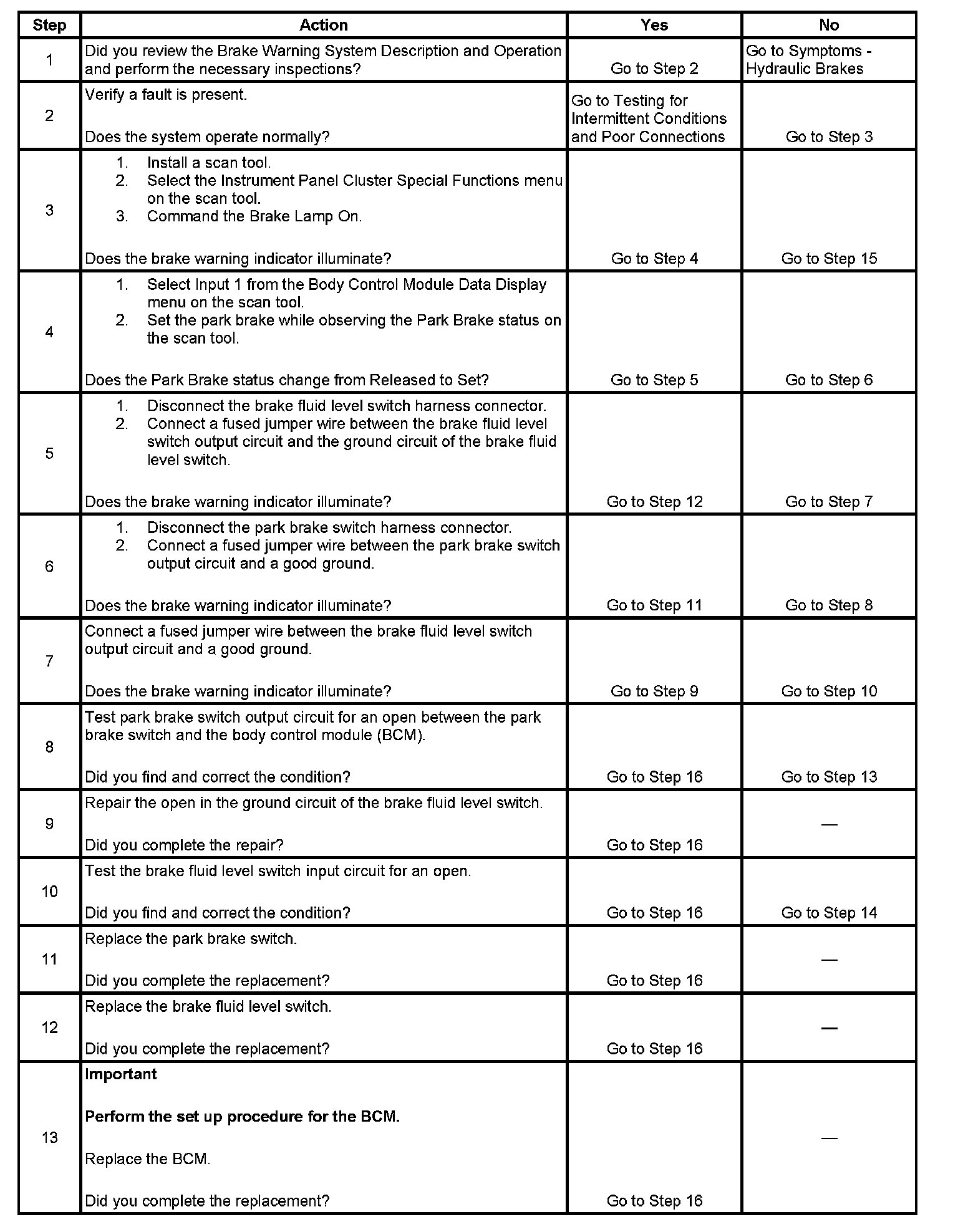 Brake Warning Indicator Inoperative