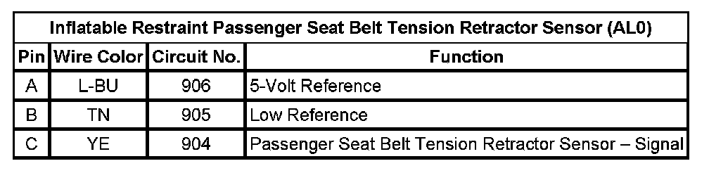 Inflatable Restraint Passenger Seat Belt Tension Retractor Sensor (AL0)