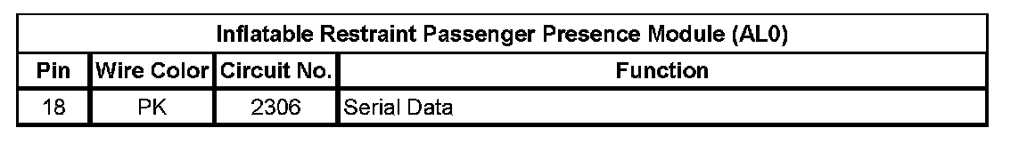 Inflatable Restraint Passenger Presence Module (With RPO Code AL0) (Pin 18):