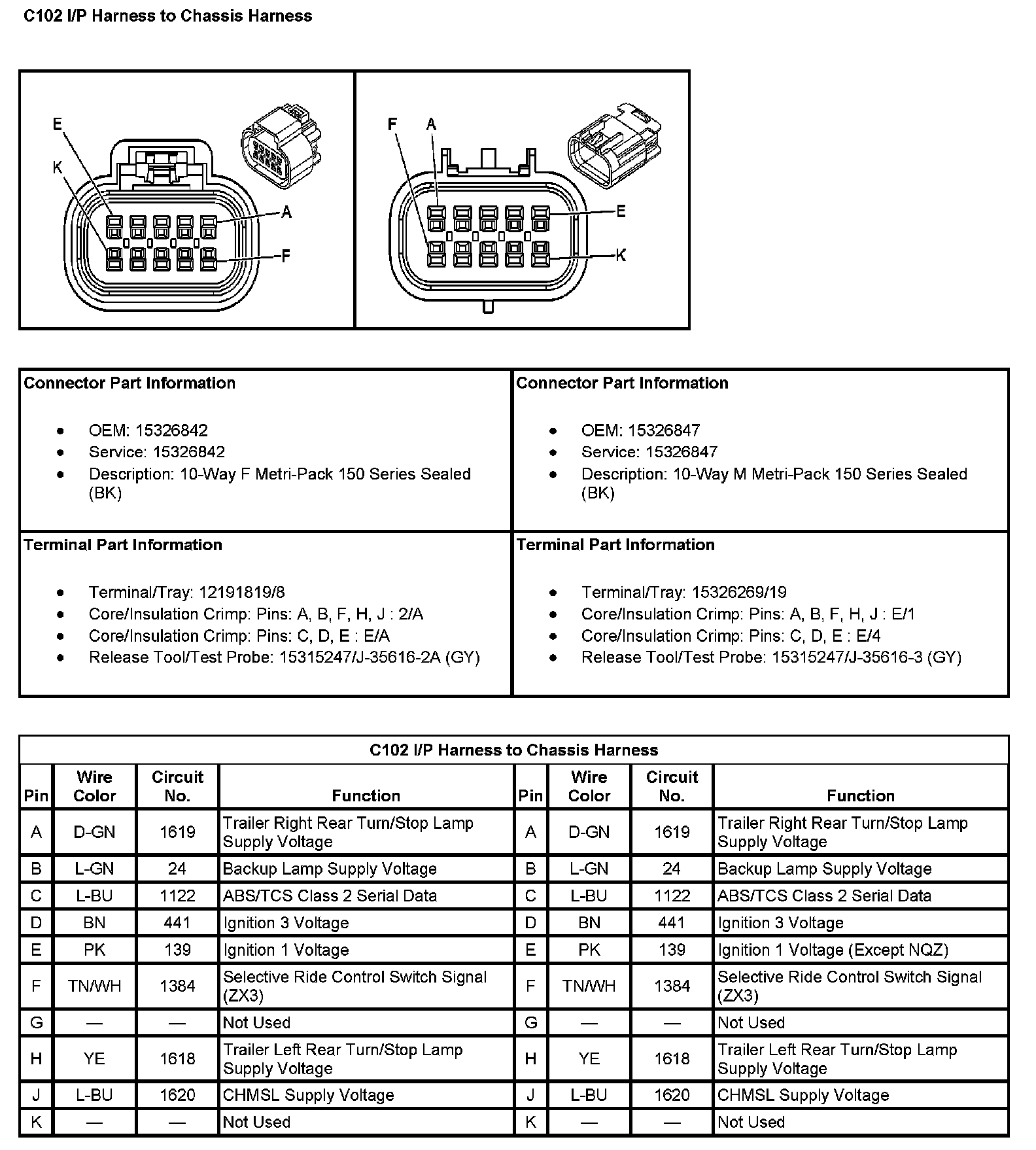 C102 I/P Harness To Chassis Harness: