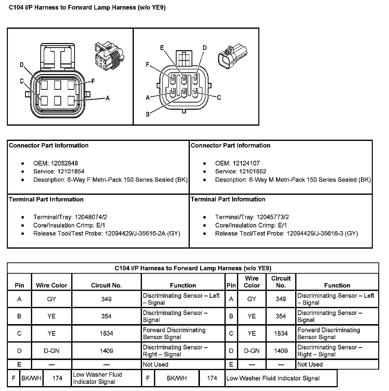 C104 I/P Harness To Forward Lamp Harness (Without RPO Code YE9):