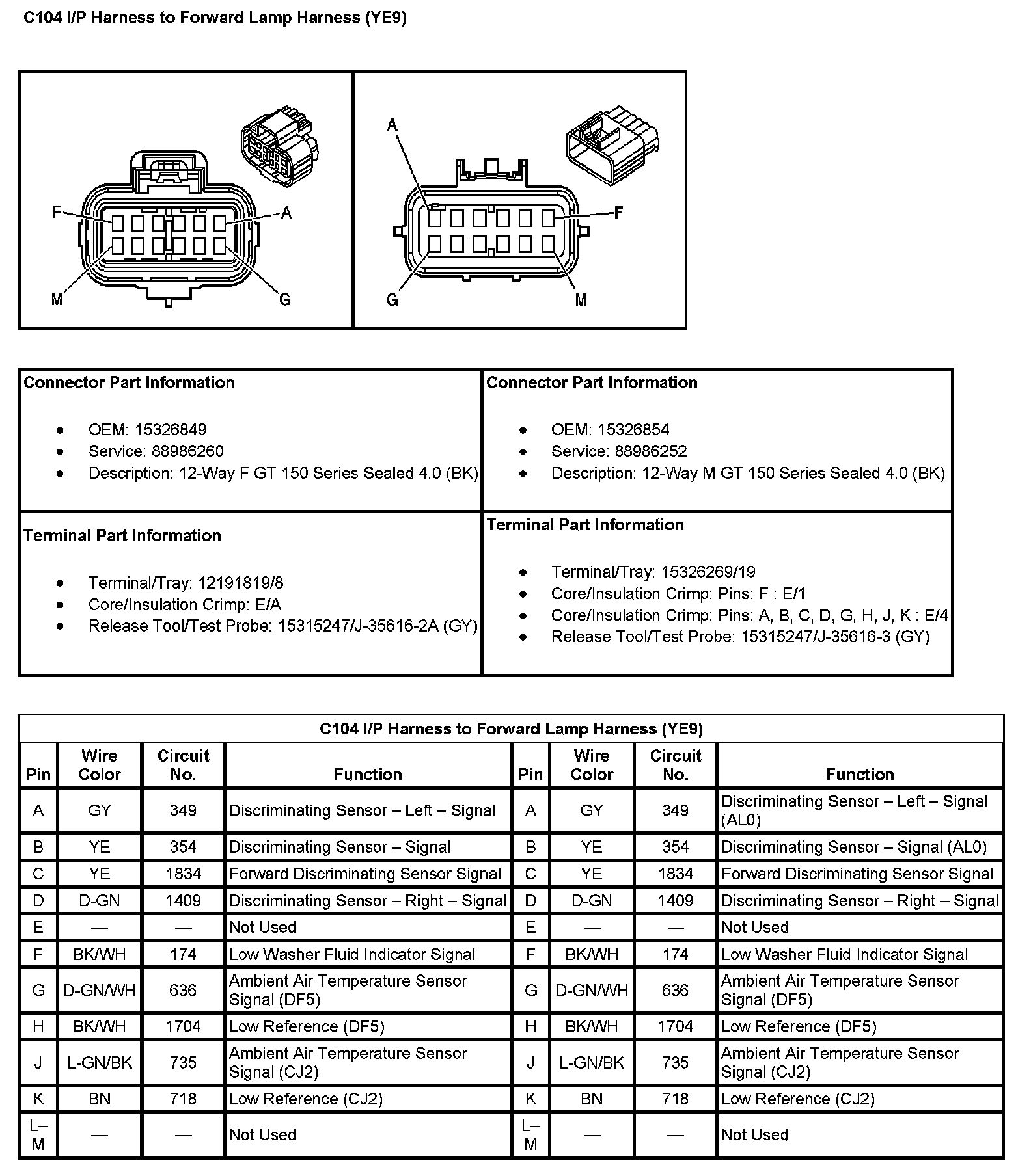 C104 I/P Harness To Forward Lamp Harness (With RPO Code YE9):