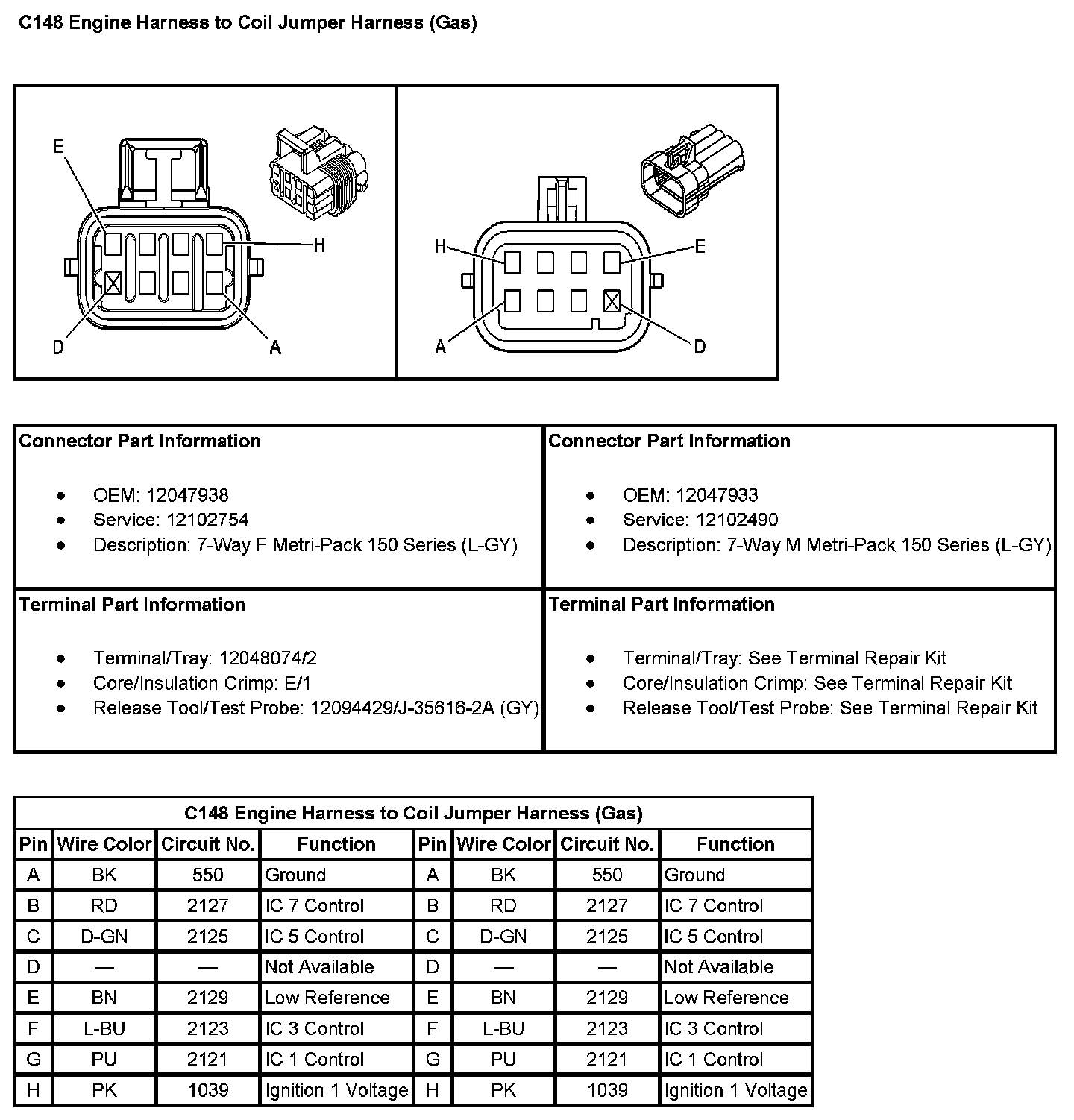 C148 Engine Harness To Coil Jumper Harness (Gas):