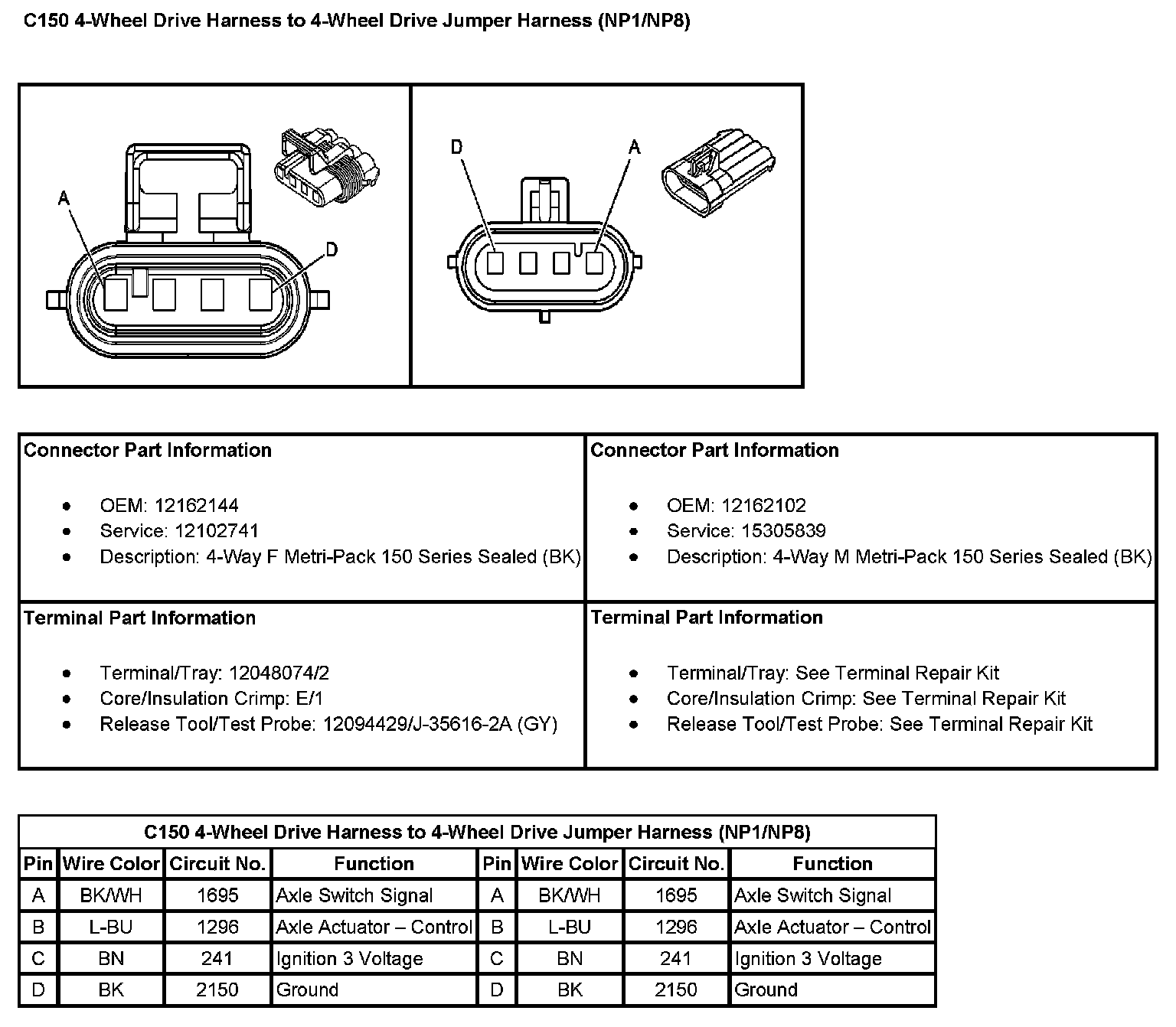 C150 4-Wheel Drive Harness To 4-Wheel Drive Jumper Harness (With RPO Code NP1/NP8):