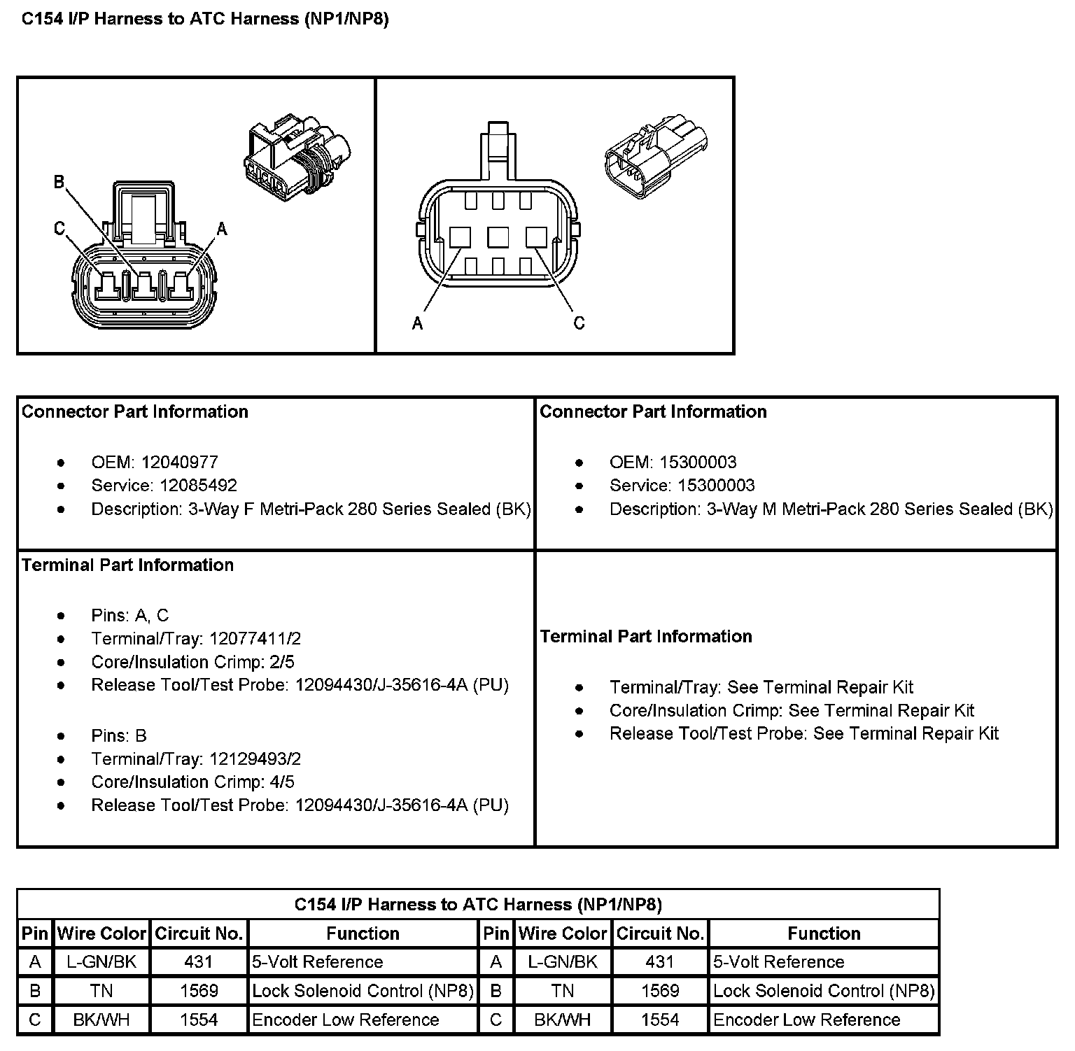 C154 I/P Harness To ATC Harness (With RPO Code NP1/NP8):