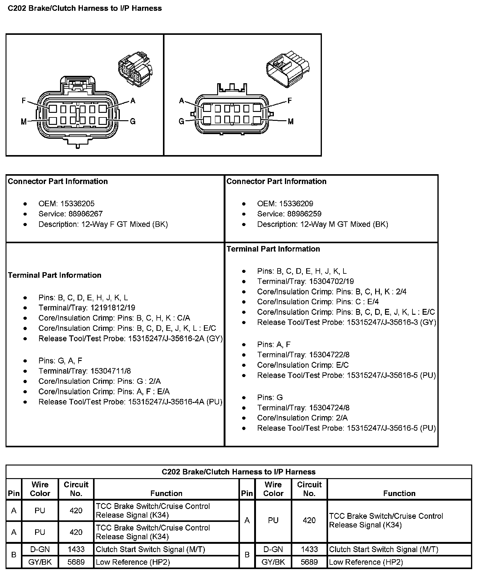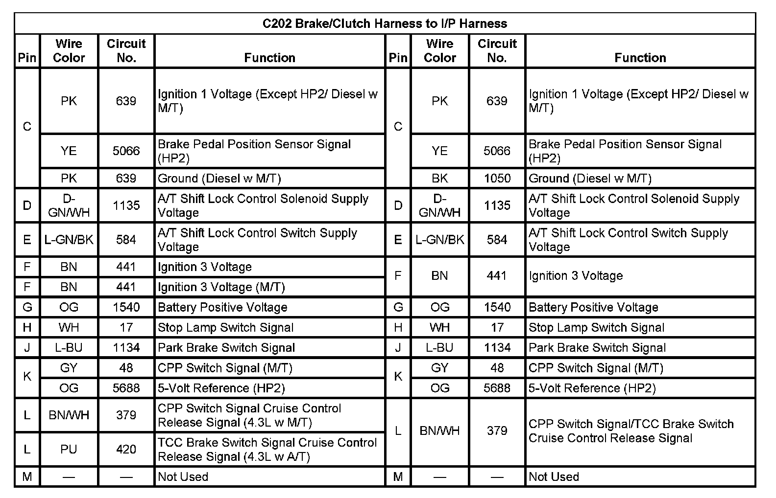 C202 Brake/Clutch Harness To I/P Harness (Pin C To M):