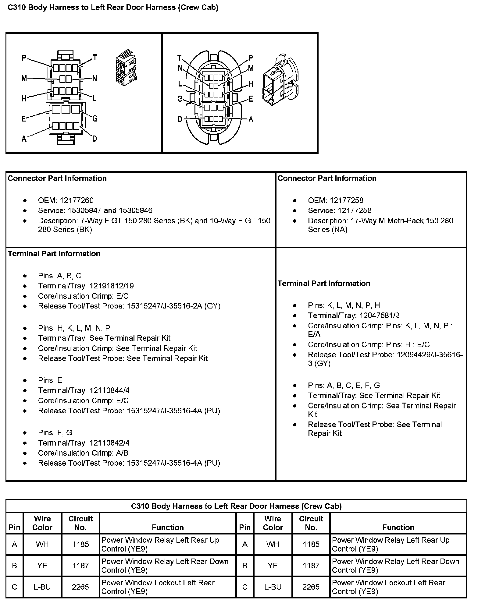C310 Body Harness To Left Rear Door Harness (Crew Cab) (Pin A To C):