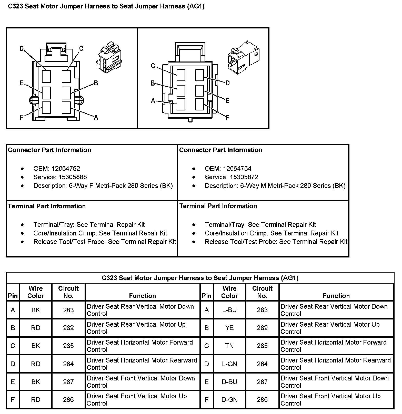 C323 Seat Motor Jumper Harness To Seat Jumper Harness (With RPO Code AG1):