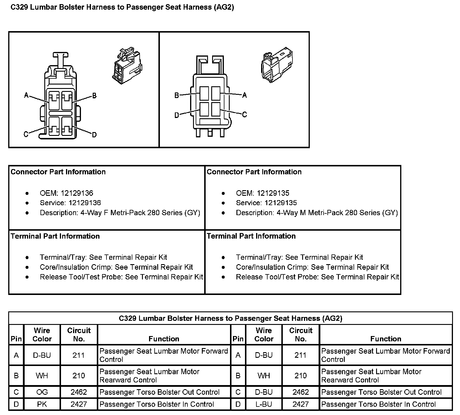 C329 Lumbar Bolster Harness To Passenger Seat Harness (With RPO Code AG2):