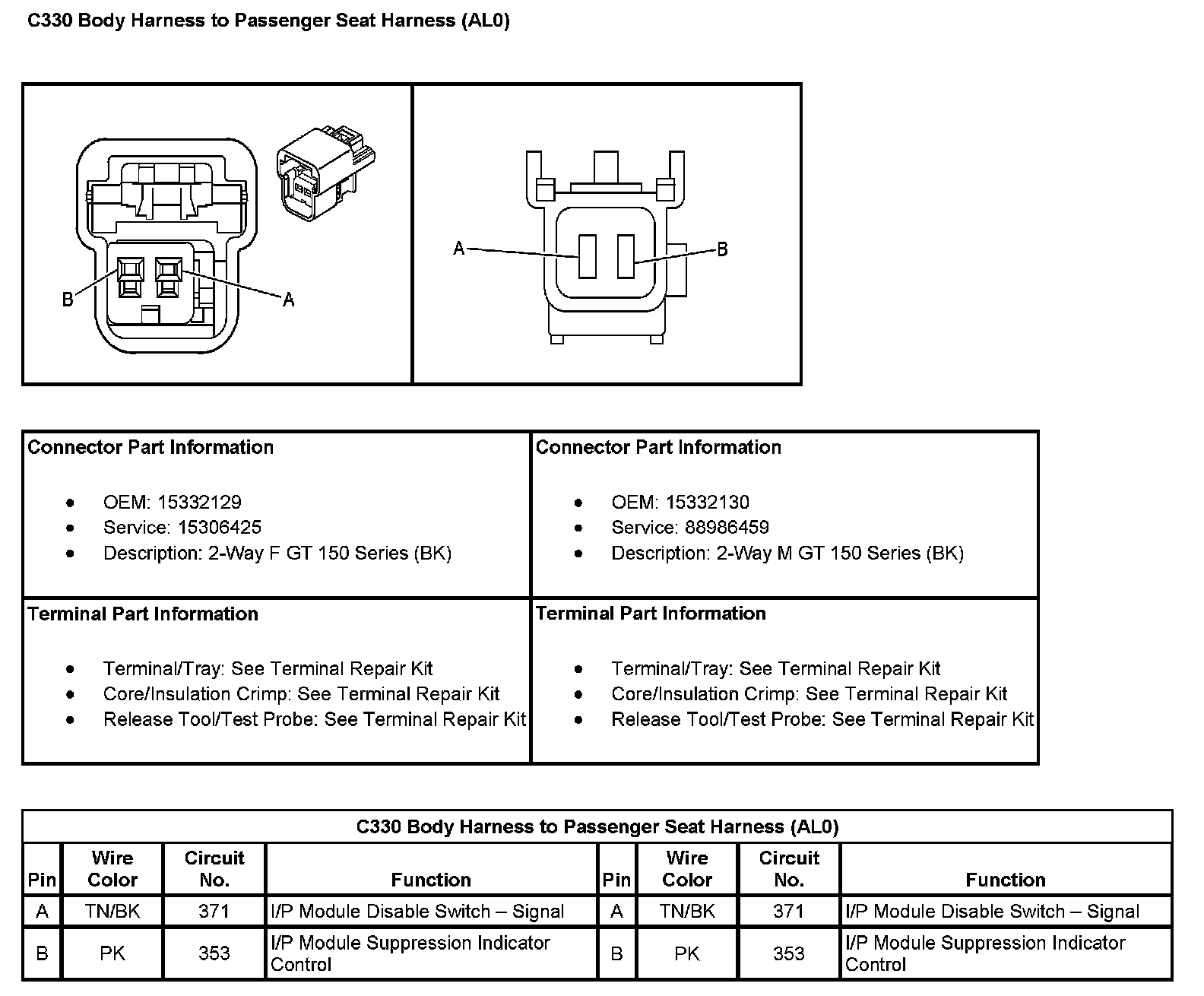 C330 Body Harness To Passenger Seat Harness (With RPO Code AL0):