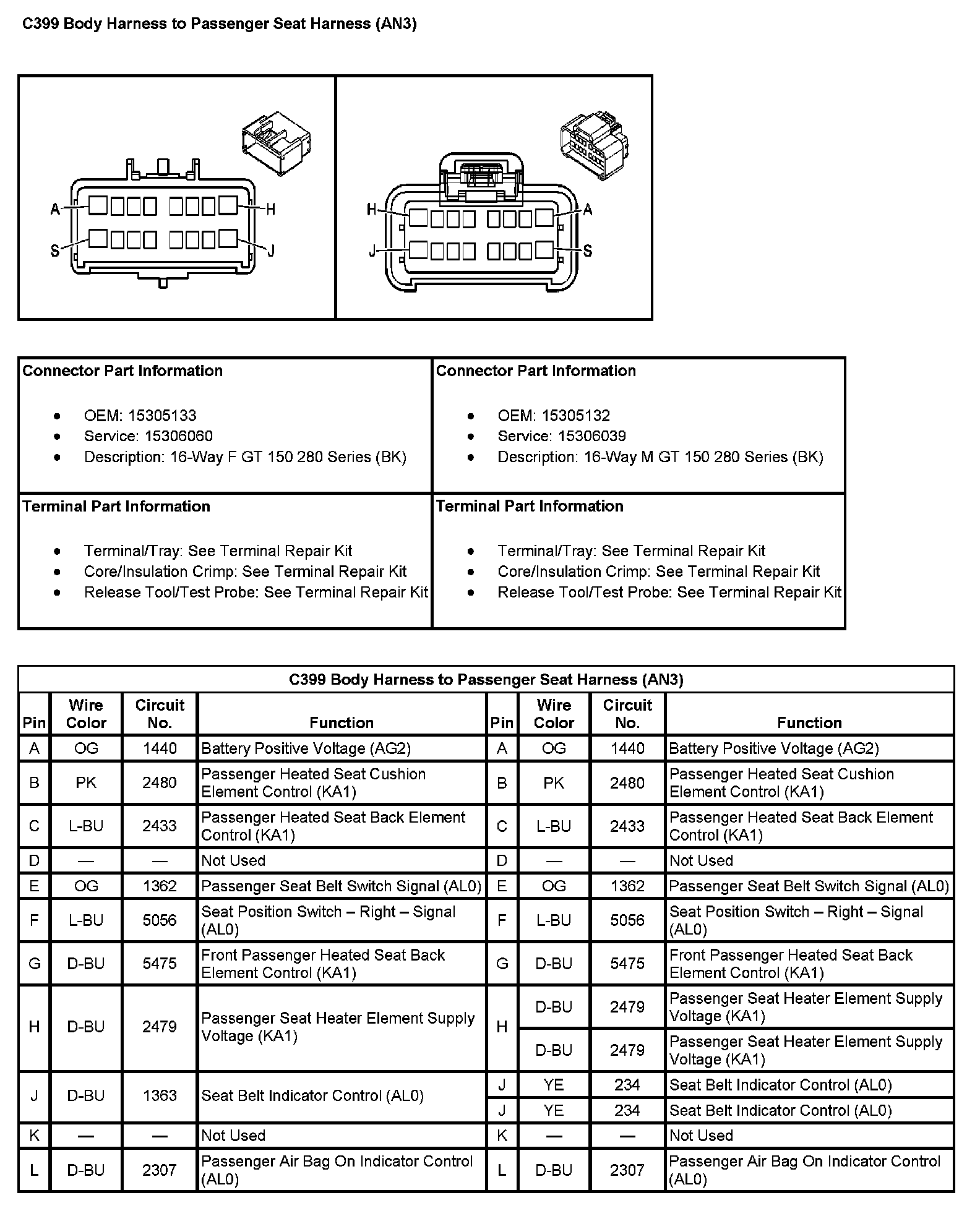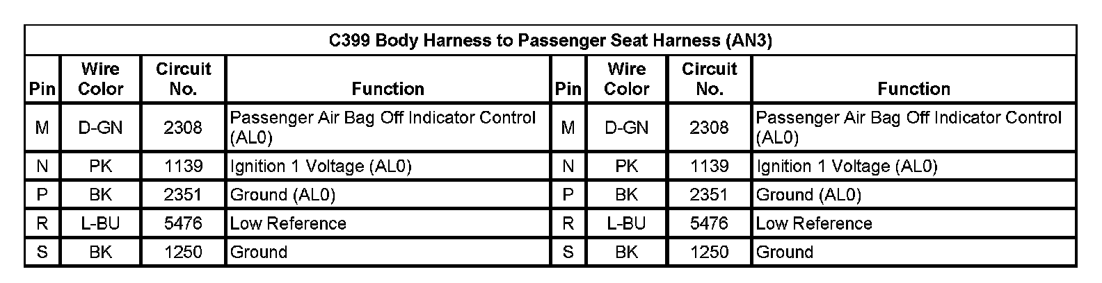 C399 Body Harness To Passenger Seat Harness (With RPO Code AN3) (Pin A To L):