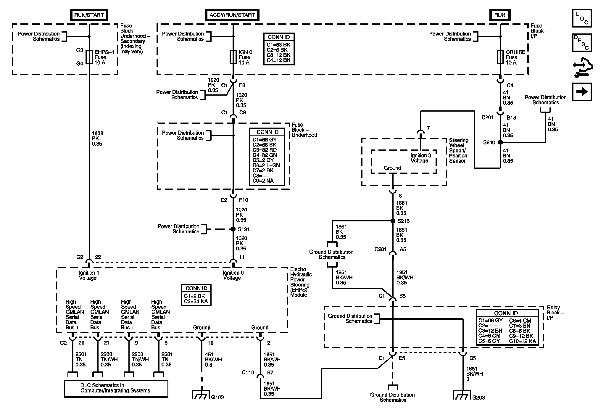 Locations: The locations for the Connectors, Grounds, Splices, and Grommets shown within these diagrams can be found via their numbers at Vehicle Locations. Locations