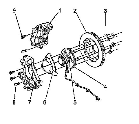7. Remove the wheel hub and bearing and splash shield from the vehicle.