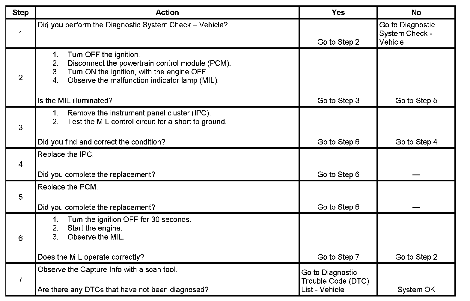 2. This step determines if the condition is with the MIL control circuit or the PCM.
