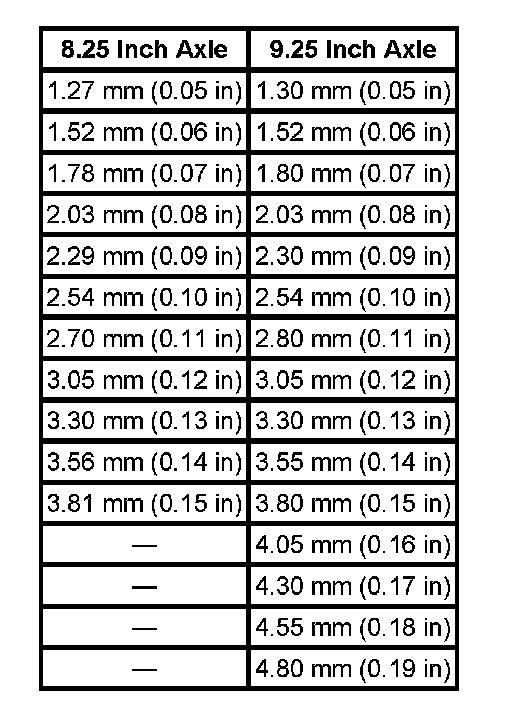 11. The correct shim size will be one size smaller than the figure obtained in the previous step. Note the following examples: