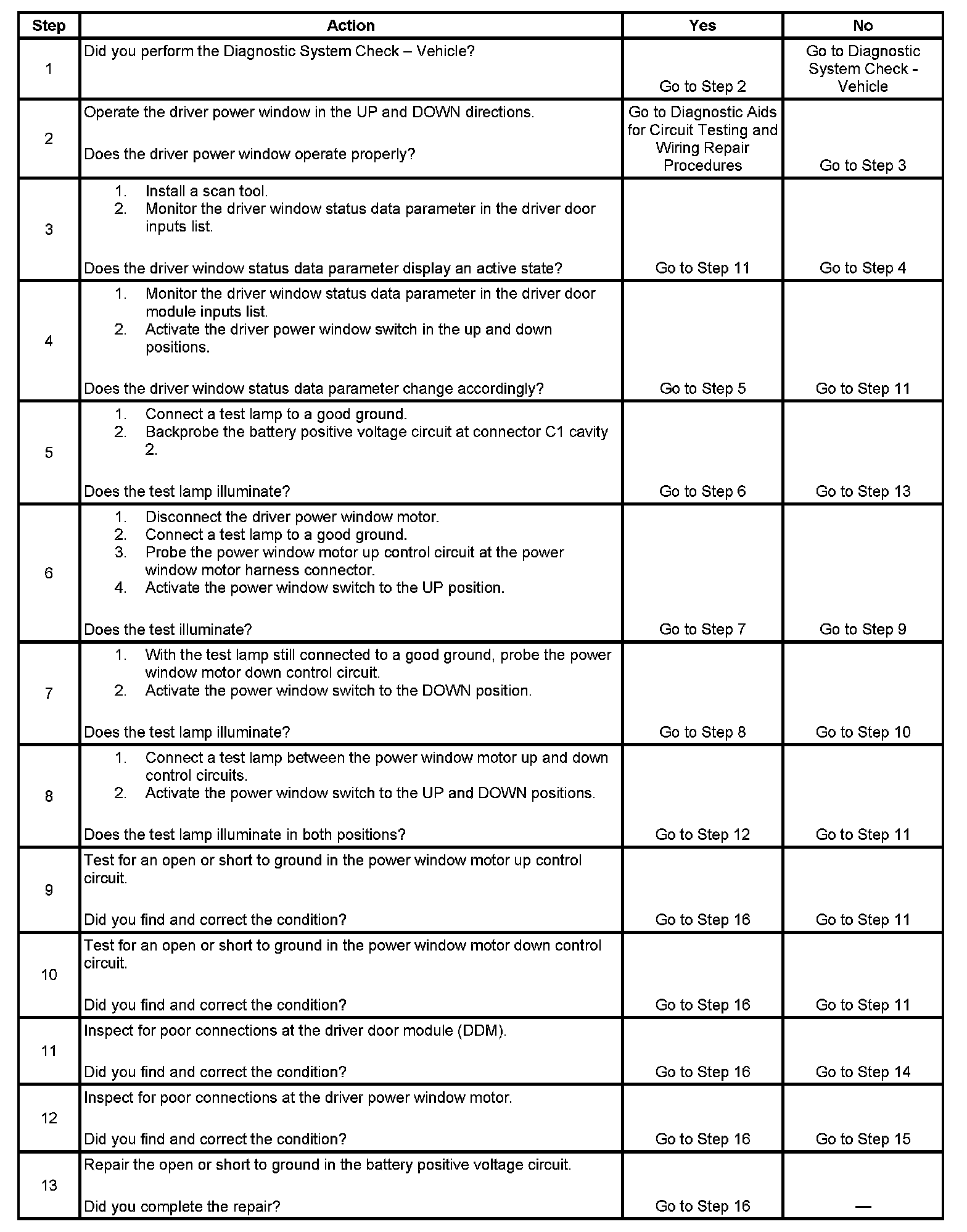 Power Window Inoperative - Driver Door