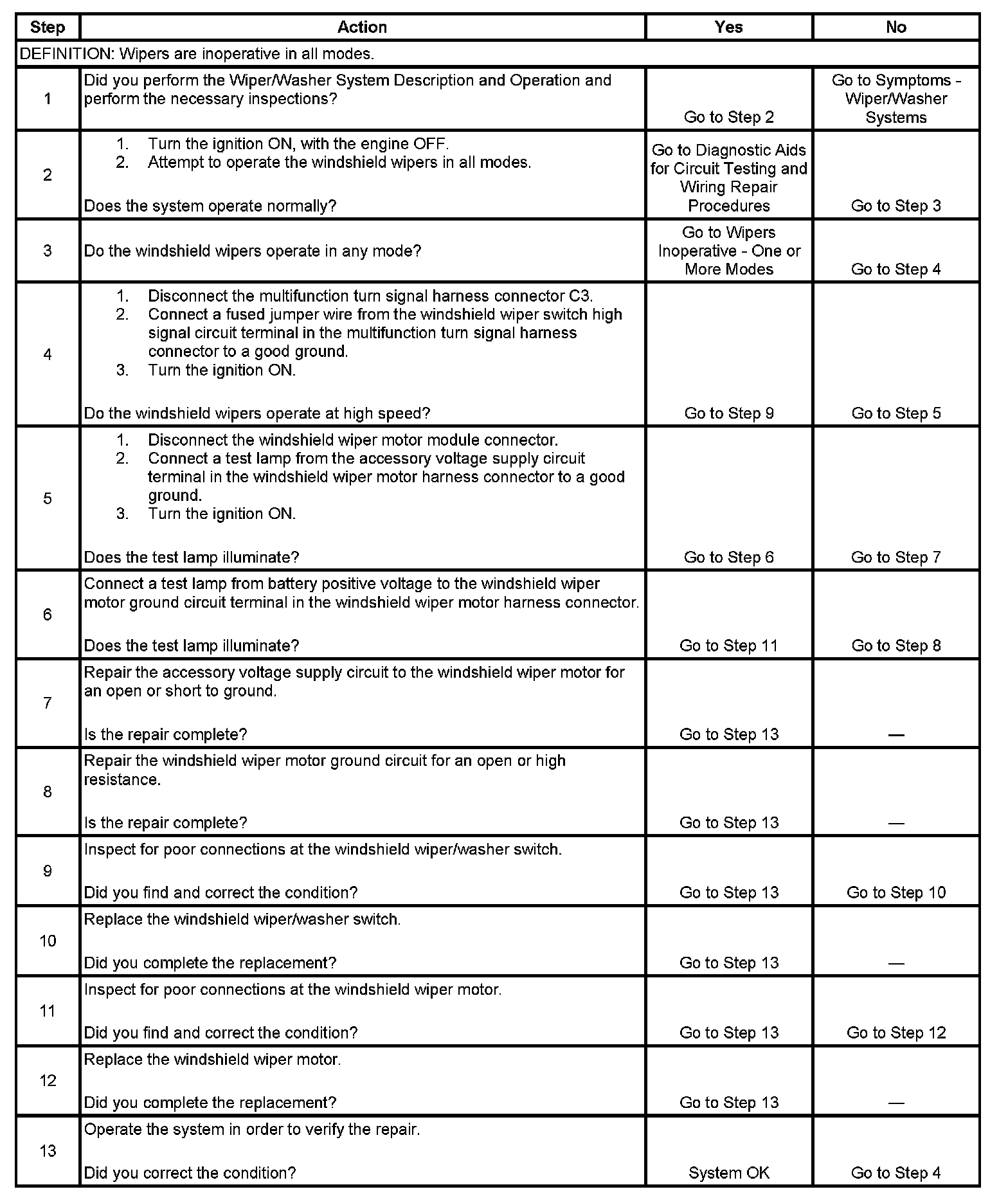 Wipers Inoperative - All Modes