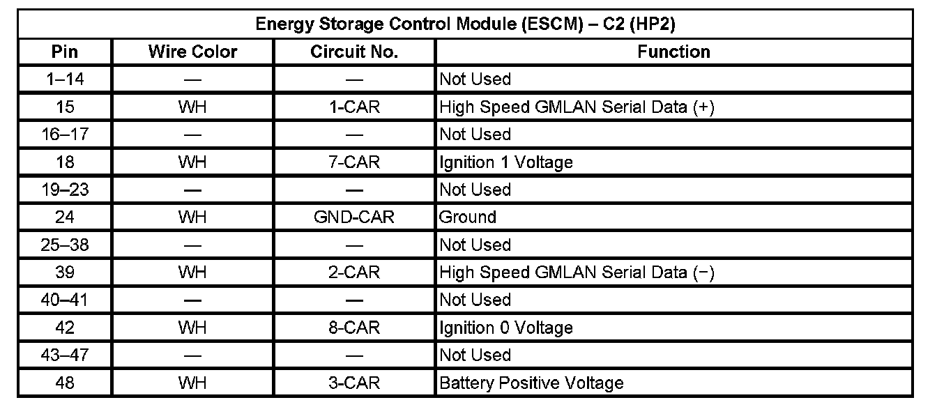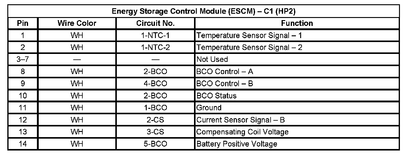 Energy Storage Control Module (ESCM) - C1 (With RPO Code HP2) (Pin 1 To 14):
