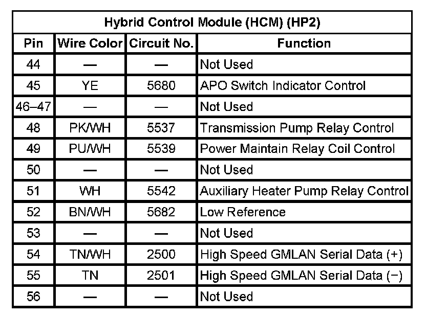 Hybrid Control Module (HCM) - (With RPO Code HP2) (Pin 44 To 56):