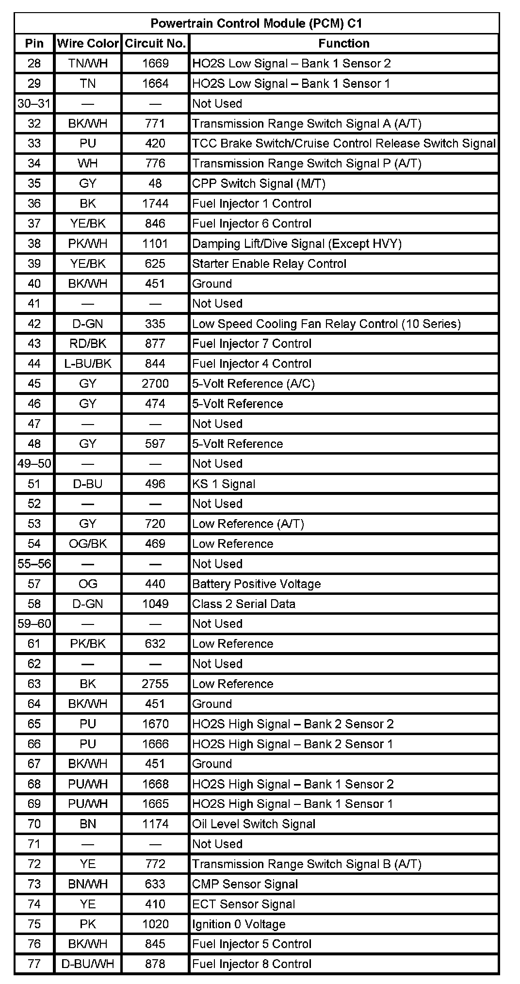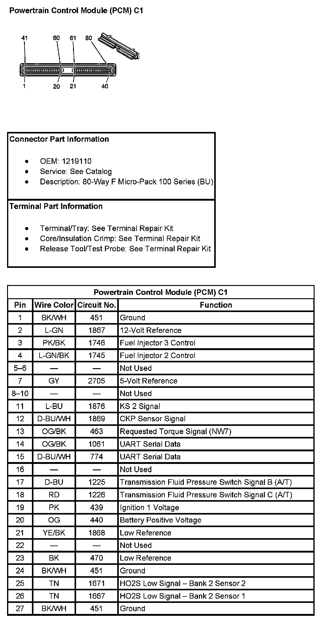 Powertrain Control Module (PCM) C1 (Part 2):