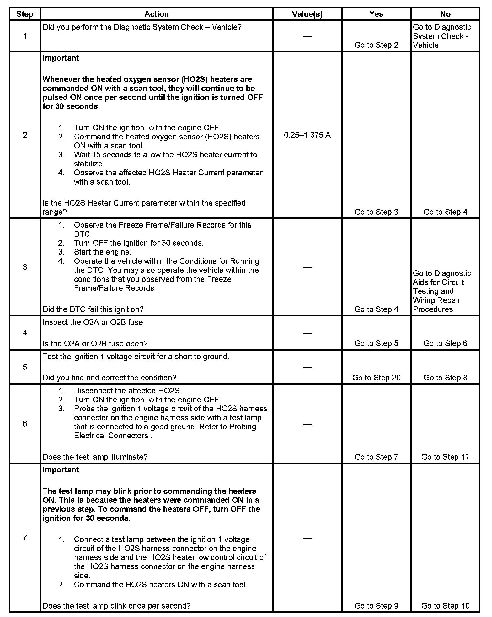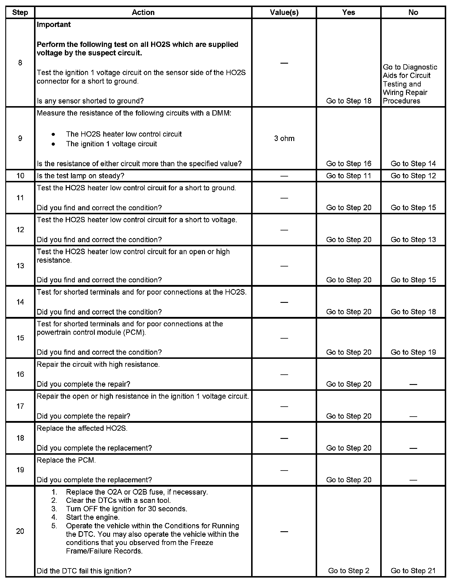 The number below refers to the step number on the diagnostic table.