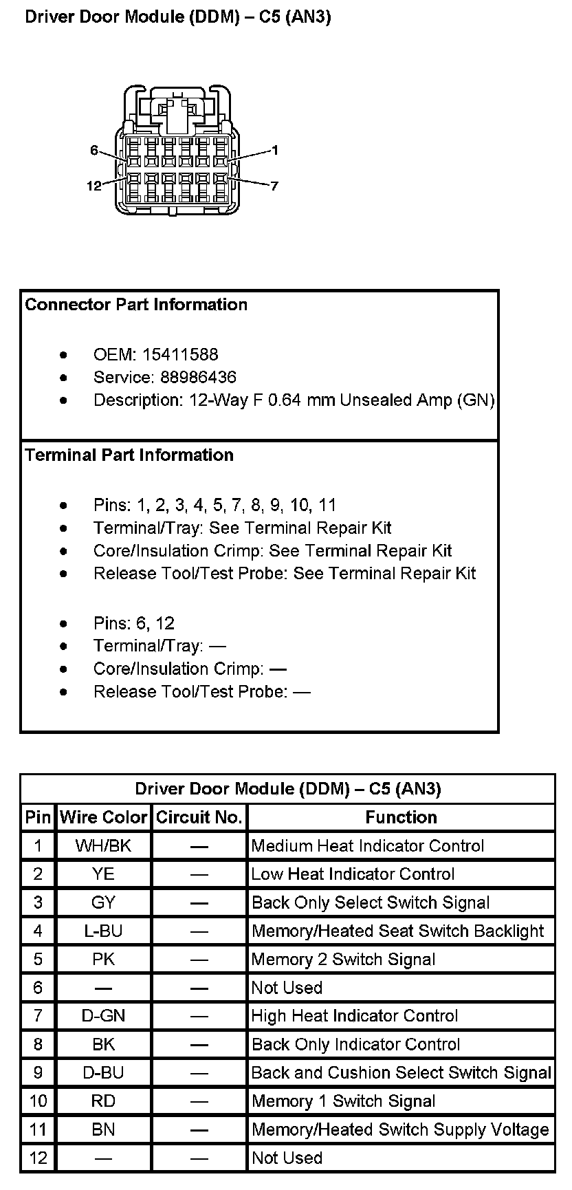 Driver Door Module (DDM) - C5 (With RPO Code AN3):