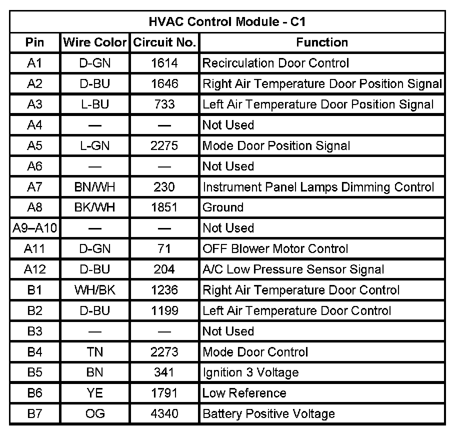 HVAC Control Module - C1 (Pin A1 - B7):