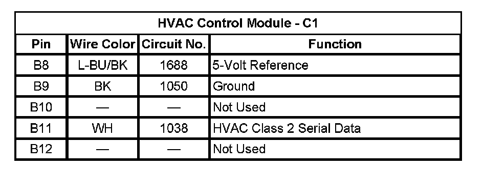 HVAC Control Module - C1 (Pin B8 - B12):